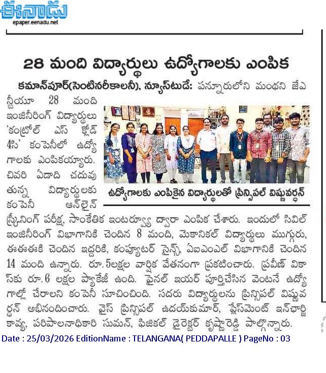 A constituent college of JNTU Hyderabad , Approved by AICTE, New Delhi & Recognised by UGC under section 2(f) & 12(B) of UGC Act 1956