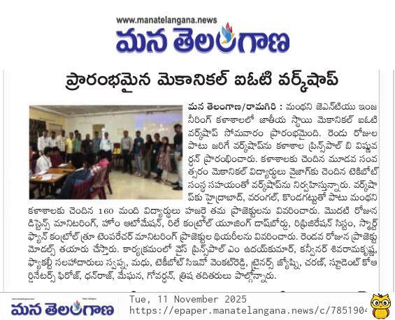 A constituent college of JNTU Hyderabad , Approved by AICTE, New Delhi & Recognised by UGC under section 2(f) & 12(B) of UGC Act 1956
